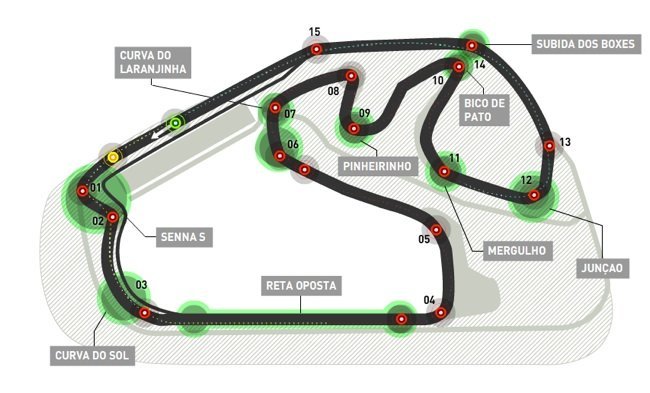 El gran premio de casa para los pilotos brasileños ha sido ganado por 4 pilotos nacidos en Brasil, José Carlos Pace (1), Emerson Fittipaldi (2), Nelson Piquet Senior (2), Ayrton Senna (2), y Felipe Massa (2). El constructor más laureado en Brasil es McLaren con 12 victorias, y podrían ser empatados este fin de semana con Ferrari que lleva 11, pero con la fortaleza demostrada después del parón de otoño, hay altas posibilidades para los tifosi.