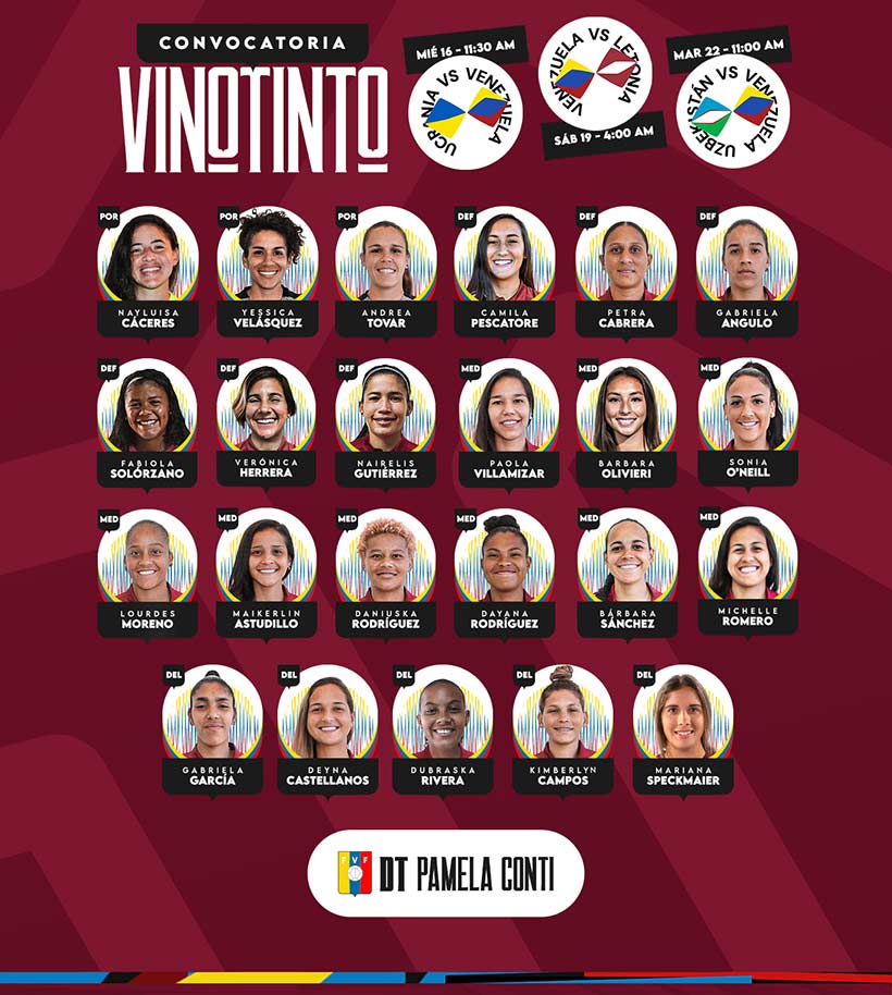 Kevin Ribeiro (@kevinribeiro1999) – Pasión X el Deporte.- La entrenadora de la Vinotinto Femenina, Pamela Conti, anunció la convocatoria para afrontar el Turkish Women’s Cup 2022, el cual se estará jugando en la ciudad de Alanya,Turquía, entre el 16 y el 22 de febrero.