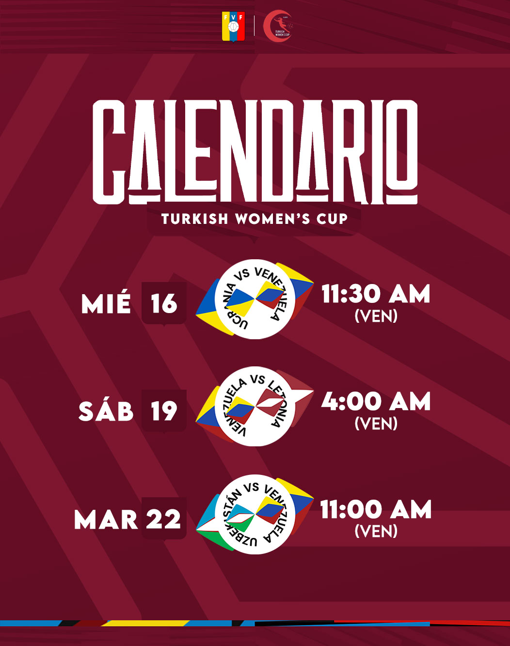 La Vinotinto estará enfrentando en dicho certamen a los combinados nacionales de Ucrania el miércoles 16 de febrero, posteriormente a su similar de Letonia el sábado 19 y tres días más tarde, el martes 22, terminará la gira ante Uzbekistán. Los cotejos se realizarán en el Oba Alanya Stadium.